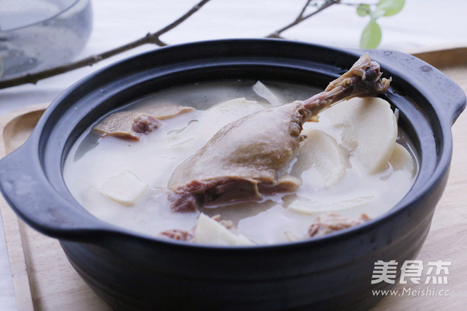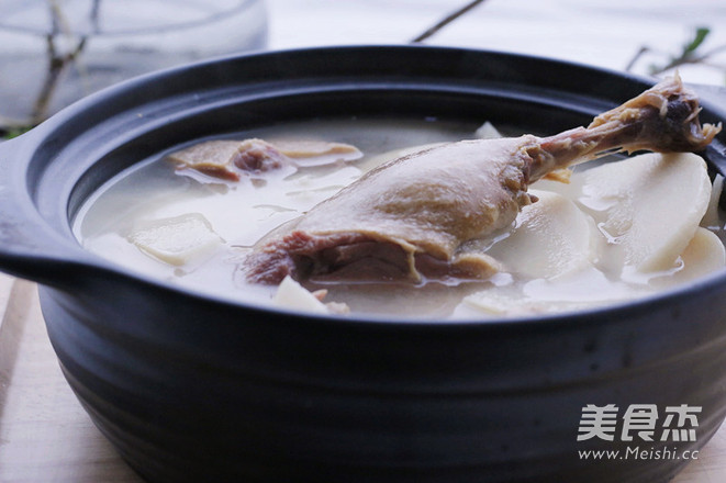 11.加入2勺盐,用勺子搅拌均匀,启动第二次煲汤功能,最后进行90分钟的煲制。(因为腊鸭有盐味,这一步需要根据你的腊鸭进行调整)