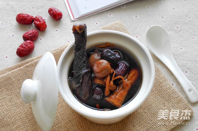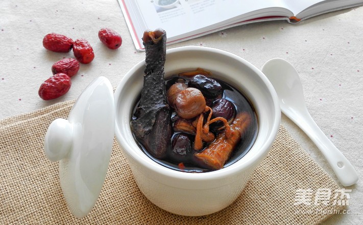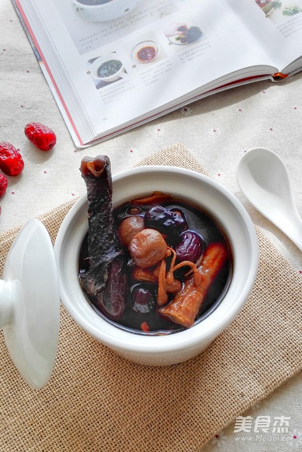 这是一道女人的补益靓汤,补气血、养颜。 四物汤是一道汉族药膳。中医补血、养血的经典药方,由当归、川芎、白芍、熟地四味药组成。乌鸡胆固醇和脂肪含量却很低,乌鸡的血清总蛋白和球蛋白质含量均明显高于普通鸡,乌鸡肉中含氨基酸高于普通鸡,而且含铁元素也比普通鸡高很多,是营养价值极高的。乌鸡性平、味甘;具有滋阴清热、补肝益肾、健脾止泻等作用。