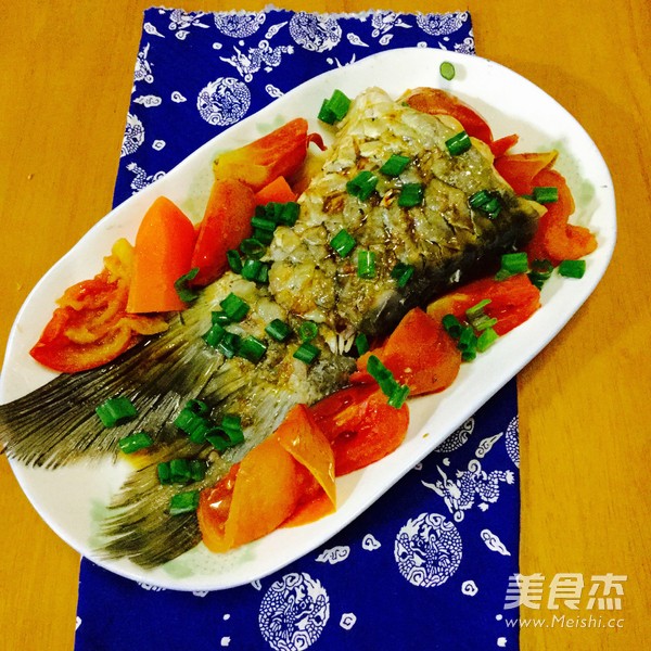 12.捞起鱼尾,撒上葱花,淋上熟油和蒸鱼豉油