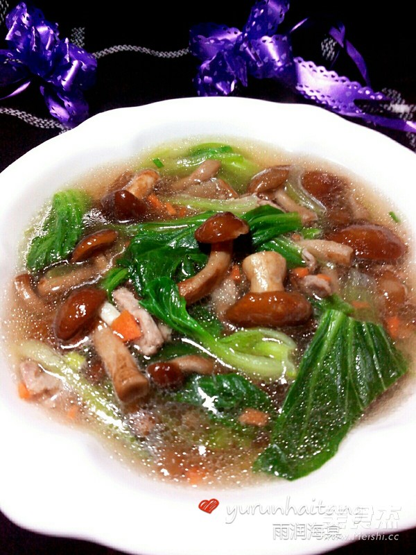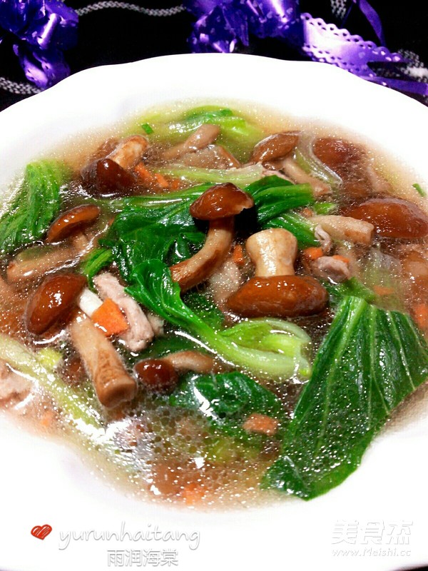 2.准备食材:猪肉切薄片用酱油和淀粉拌匀,油菜叶和帮分开,油菜帮切丝