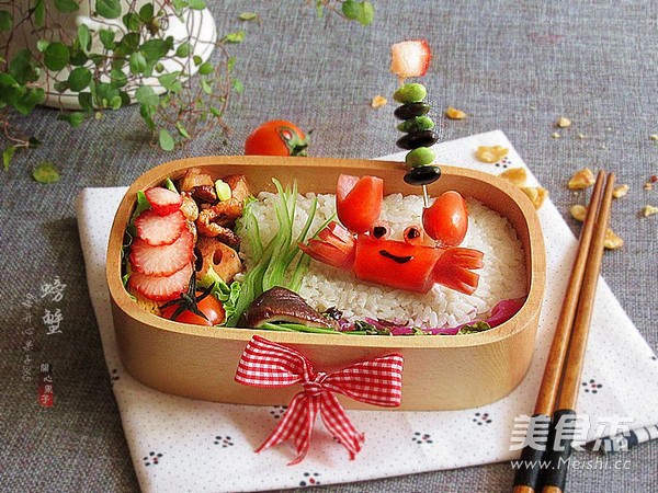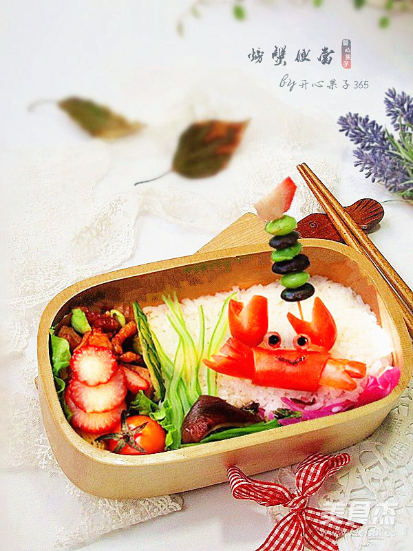 9.可爱的小螃蟹便当做出来了,需要带出远行的话,饭盒食材不要放得太满,可以外形避免压扁