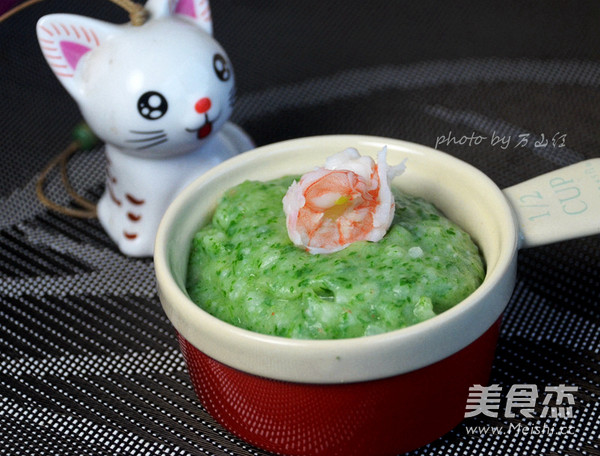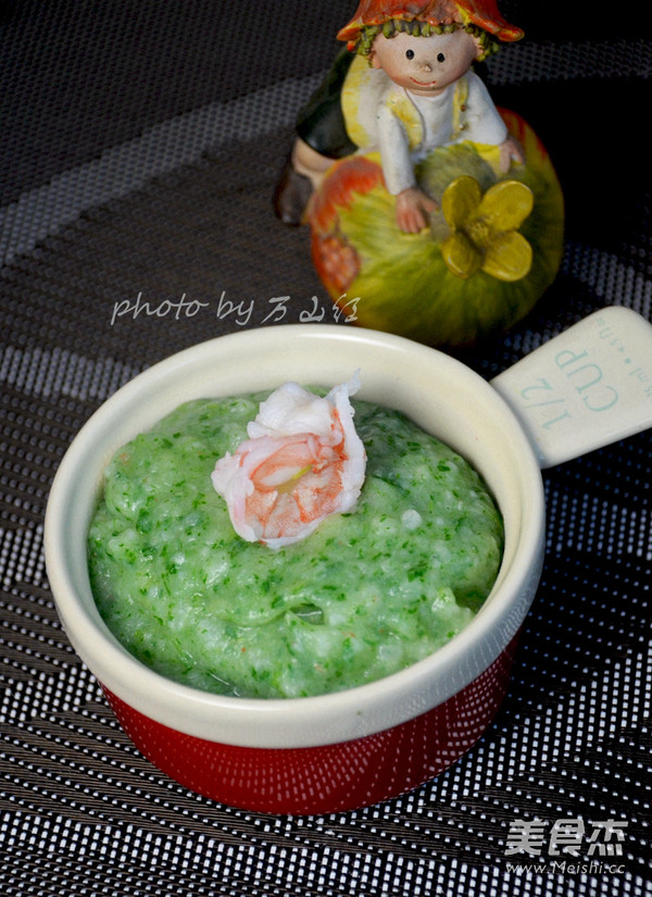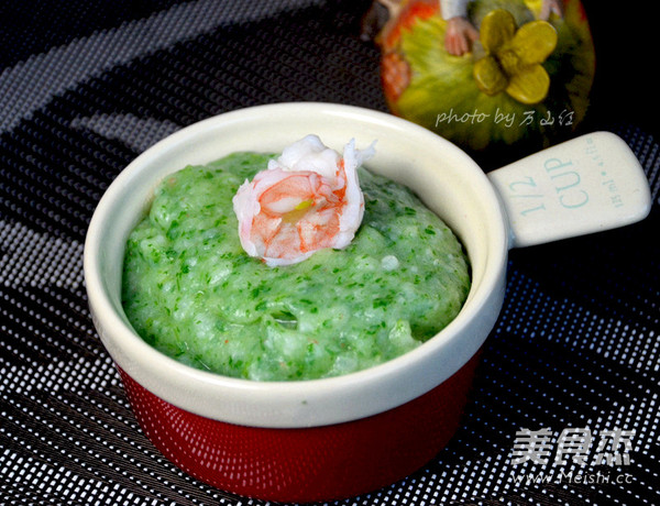 9.做好的土豆泥,翠绿的蔬菜,鲜嫩的虾仁,尽管没有放盐,但味道依然很好的哦,小宝宝可喜欢啦,这样的小碗能吃两碗哩