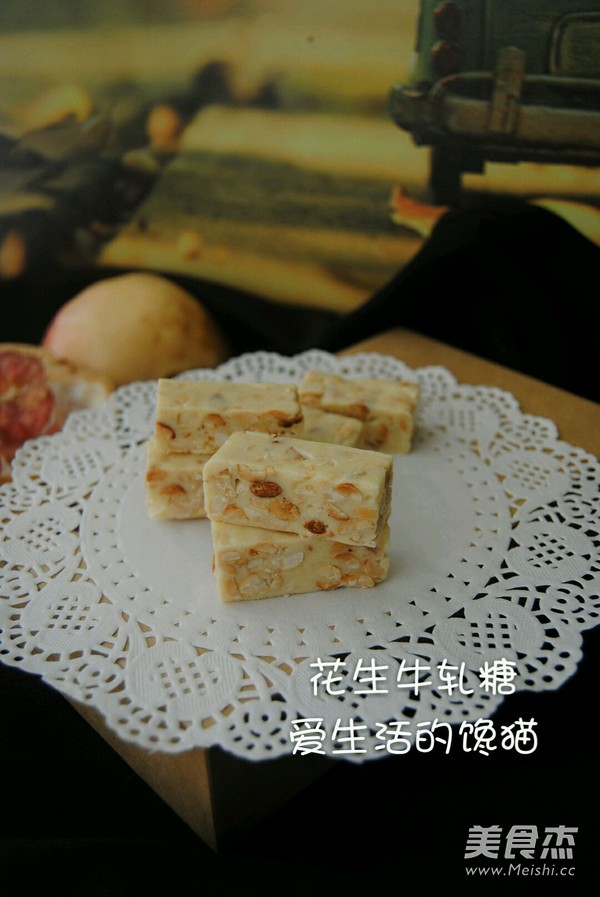 送人自己吃都是不错的哦 主料 奶粉100克 花生仁180克 棉花糖180克 辅料 黄油20克 玉米油20克 花生牛轧糖的做法 1.花生仁小火炒熟去衣 2. 黄油放锅内融化,倒入玉米油混合均匀 3.倒入棉花糖,小火融化 4.倒入奶粉拌匀,这个时候粘性很大,一定要拌匀 5.倒入花生,关火,就锅拌匀,小心烫手 6.倒入不沾烤盘,用手揉匀几下,整形,放凉后再入冰箱冷藏至硬 7.拿出切块,再放入冰箱冷冻十分钟,取出用糖纸包好就可以送人咯