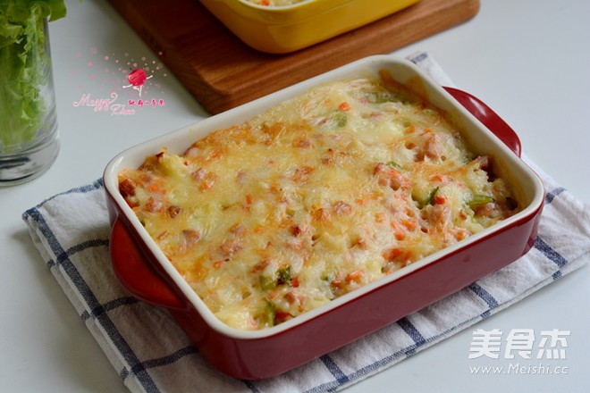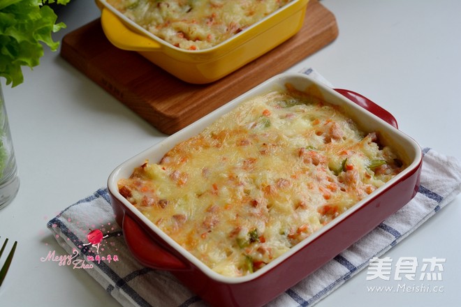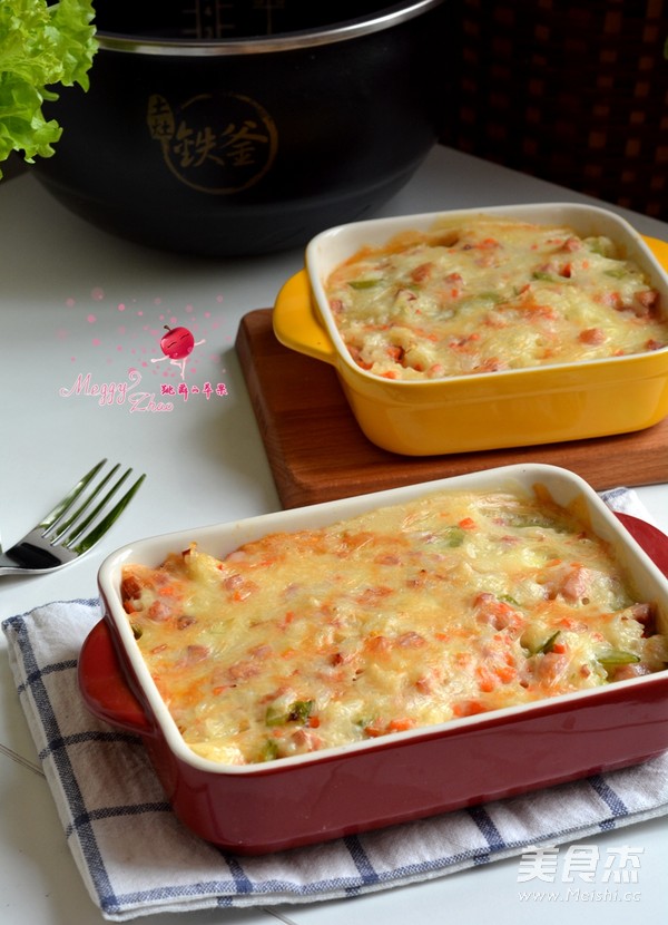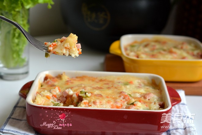 剩米饭炒炒,再加点马苏里拉奶酪,就变身成为华丽丽的焗饭啦!原来,中西方的饮食也只是差这么一点点!