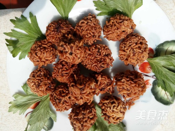6.肉丸揉圆裹上方便面碎备用。