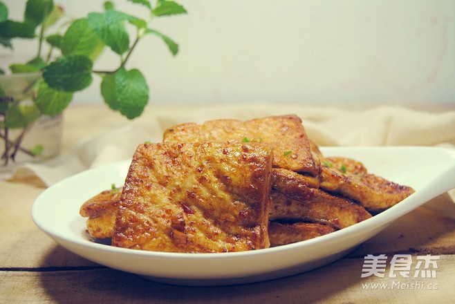 豆腐,老幼都爱吃,它做法简单,营养价值也高 主料 豆腐3大块 酱油10克 蚝油5克 辅料 辣椒酱1小勺 蒜末5克 油适量 胡椒粉1克 香煎豆腐的做法 1.豆腐洗净切十字变小方块 2.热锅下入适量的油,如果是不粘锅油量可以少一些,把豆腐块沥干水放下去,中小火煎 3.看到底部周围起小泡了就可以翻一次面,再煎 4.那一面煎好了,翻过来转小火慢煎,这样煎出来的豆腐会很香,每一面都煎2遍就可以 5.煎好的豆腐放入蒜末 6.倒入酱油,蚝油,辣椒酱,胡椒粉 7.轻轻翻匀,让每一块豆腐都沾满酱汁即可