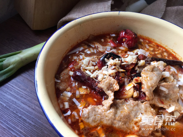 1、肉切薄一点,别煮老了,时间不用太久; 2、用的辣椒少,喜欢味重的辣椒花椒面什么的酌情添加。