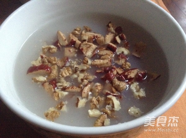 寒冷的冬天 来一碗 暖心暖手暖胃 补充能量 主料 山药(粉末)2勺 核桃适量 红枣适量 辅料 冰糖适量 水适量 核桃红枣山药羹的做法 1.超市买山药粉 2.核桃 两个 红枣 两个 3.冰糖根据 自己口味 适量 4.用冷开水把山药粉 滑开 再加入开水半碗 冰糖适量 搅拌均匀 放入微波炉 两分钟 撒上核桃 红枣 即可食用了 烹饪技巧 加葡萄干 芝麻 也挺好 根据自己喜欢吧 喜欢吃什么就加什么 夏天就冰镇了吃 也是别有滋味哦