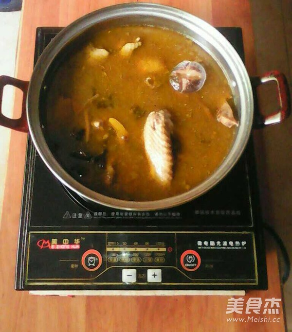 火候要注意 主料 土鸡1只 苡仁50克 花生(炒)50克 黑米30克 黑木耳50克 黄花50克 香菇50克 辅料 莲子10克 百合5克 红枣10克 枸杞5克 家乐浓汤宝1个 菜籽油50毫升 山珍鸡肉火锅的做法 1.把食材洗净备好 2.把泡好的苡仁花生米黑米加水炖 3.鸡洗净切块 4.水开后加黑木耳黄花香菇莲子炖 5.铁锅烧热放菜籽油和鸡油爆香开小火炒姜片 6.开大火爆香鸡块 7.把炖好的汤汁倒入铁锅内加百合红枣浓汤宝熬至30分钟加枸杞小火炖30分钟山珍鸡肉火锅做好 烹饪技巧 苡仁花生米黑米泡8小时以上 泡的水可炖汤