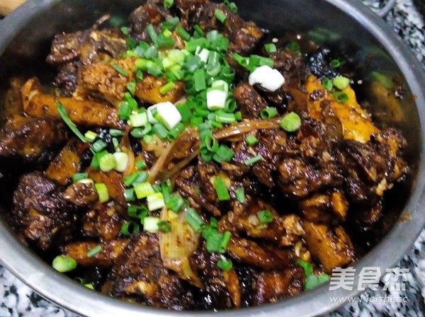 12月20号的时候在麻辣空间买了一套火锅冒菜底料的组合装,5天之后收到货,没想到里面多了送了一袋香锅底料的赠品,联系客服之后才知道,这是他们家的新品,正在顾客是吃反馈阶段,上市销售的时间还没定。抱着怀疑的态度做了这道香锅排骨,除了颜色比较深意外(里面有两小袋,不知道是我加多了还是这底料的老抽比较多),味道是很不错的。