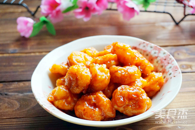 10.白糖,白醋,生抽,淀粉,番茄酱,盐,加适量水调匀成料汁。