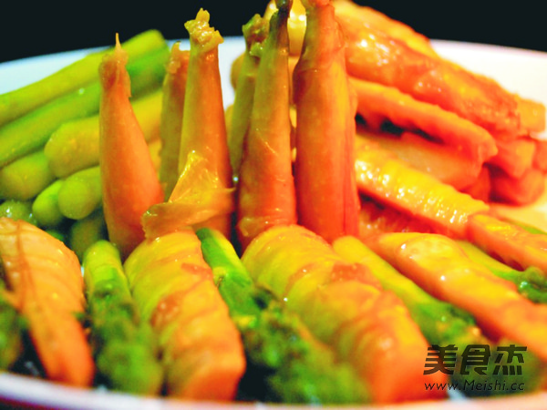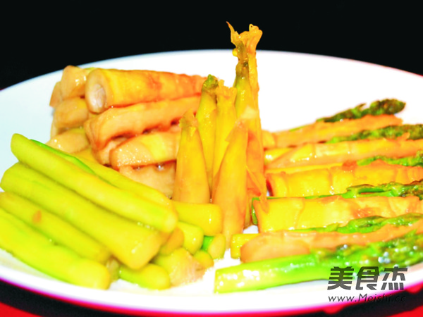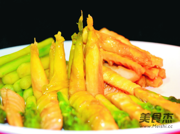 春季的春笋和芦笋都非常的脆嫩,这是一道素菜,也可以说是春天的味道吧,用极具春天特色的春笋,搭配绿油油非常熟悉的防癌明星蔬菜芦笋。马上感受到春天的气息,视觉效果也极佳