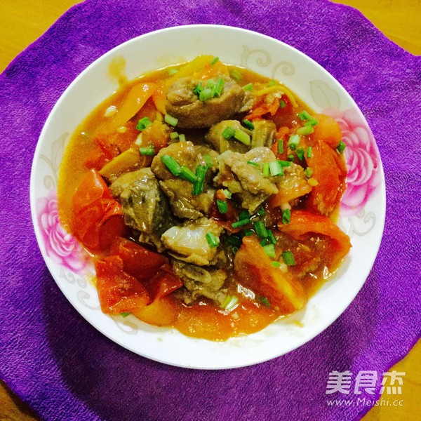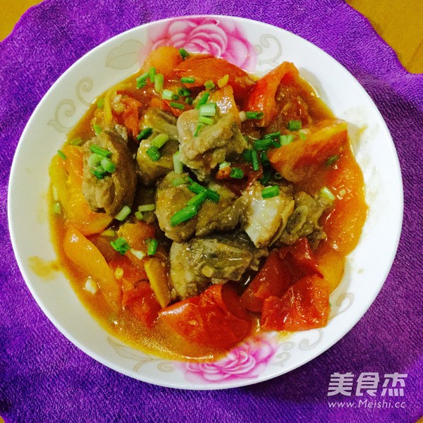 喜欢吃番茄,开胃、下饭菜 主料 番茄200克 排骨400克 辅料 油20克 盐8克 蚝油5克 砂糖3克 姜丝5克 番茄焖排骨的做法 1.番茄洗净,切块 2.排骨用油盐、蚝油腌20分钟 3.起油锅 4.放入排骨,加少许清水,盖上盖煮2分钟 5.加入番茄,加入砂糖,盖上盖煮约3分钟 6.加入盐调味,盛出,撒上葱花即可 烹饪技巧 排骨要先煮,再加入番茄