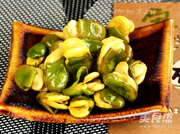 6.锅中放油,油温3--4成热即放入蚕豆中火慢慢炸。配方中给的油的量是炸的时候用的量,只是消耗一点点啦
