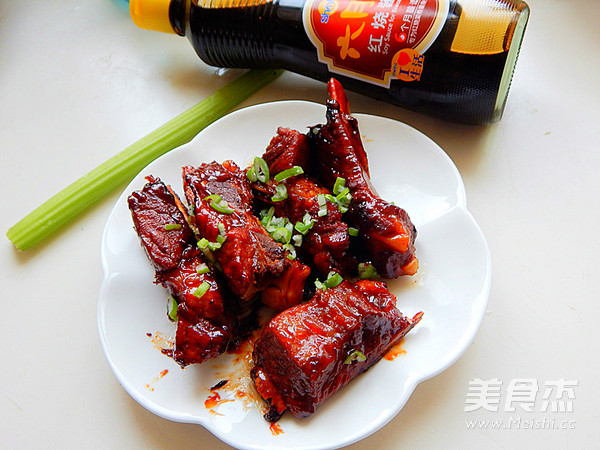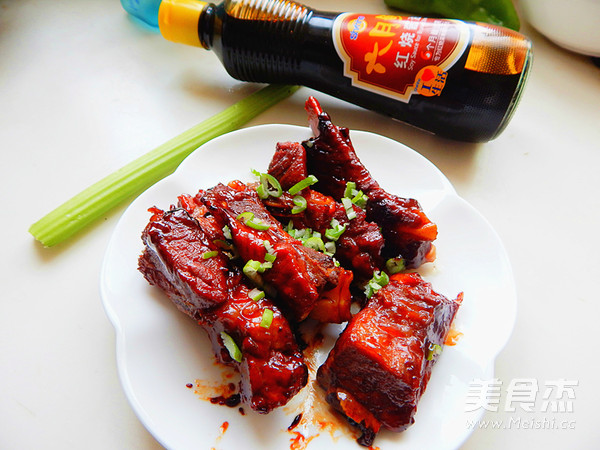 这过春节,感谢六月鲜送的来的美味酱油,今天来一道红烧排骨 主料 排骨600克 冰糖7克 辅料 六月鲜红烧酱油6克 料酒3克 水3碗 盐1勺子 #六月鲜#红烧排骨的做法 1.排骨 2.倒入清水里加入料酒 3.煮三分钟后清洗干净 4.锅里倒入油倒入冰糖 5.六月鲜红烧酱油 6.糖炒化 7.然后加入清洗过的排骨 8.炒至上色 9.加入红烧酱油 10.炒匀 11.加入2碗水 12.大火煮开转中火炖45分钟 13.炖45分钟后加入盐炒匀后在炖至收汁 14.然后装盘 烹饪技巧 这个六月鲜红烧酱油红烧出来的菜真心好吃