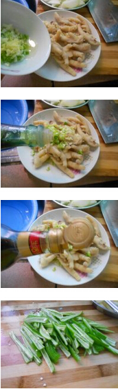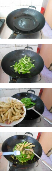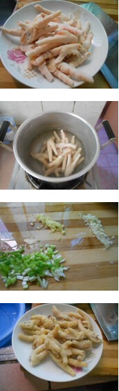 青辣椒炒凤爪的材料:鸡爪250克,青椒250克,油,盐,生抽,姜,葱,蒜 青辣椒炒凤爪的做法:1. 鸡爪去尖切成两半,锅里把水烧开后把鸡爪倒下去煮熟,葱,姜蒜切好,青椒洗净去籽切好 美食网 2. 把煮熟的鸡爪捞出来放入碗中倒入葱,姜蒜,香油,生抽拌均腌半个小时3. 坐锅倒油青椒倒下去炒,待炒软后把鸡爪倒下去炒,炒好后加入盐炒均就可以了美食网