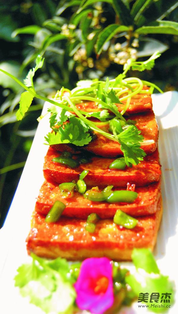 一道脆皮豆腐味道浓郁~吃起来外脆里嫩~,有家的味道哦~ 主料 豆腐1盒 辅料 葱花5克 番茄酱10毫升 白糖20克 盐2克 白醋5毫升 生抽15毫升 香菜少许 生粉适量 脆皮豆腐的做法 1.准备好一盒豆腐后,切成片 2.豆腐都粘上生粉 3.起锅入油锅煎 4.煎成两面都金黄了,盛出待用 5.另起锅,下生抽、白醋、盐、白糖、番茄酱和葱花熬一会 6.下豆腐 7.大火煮到豆腐上色,翻面,出锅前加入鸡粉就OK了 8.装盘用香菜装饰即可,上桌趁热品尝哦 烹饪技巧 调料汁按自己喜欢口味即可~