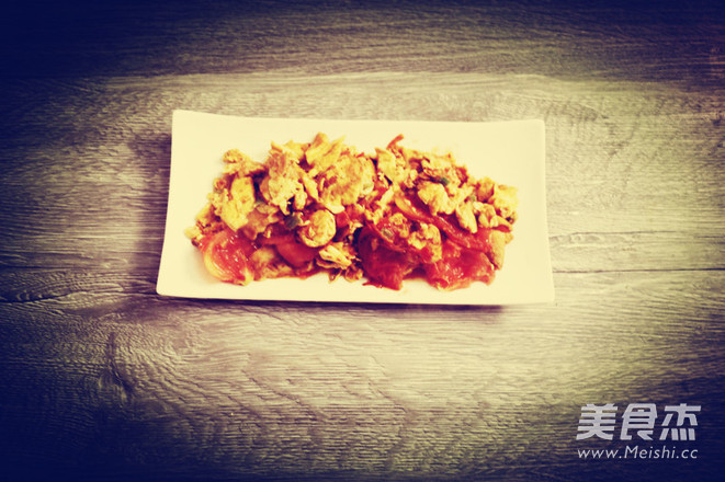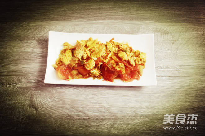 7.待西红柿炒熟出水,即可盛盘。