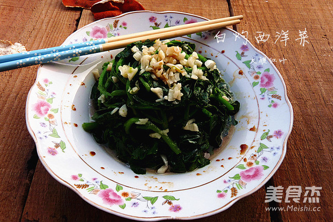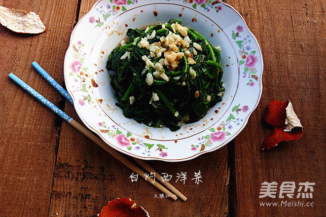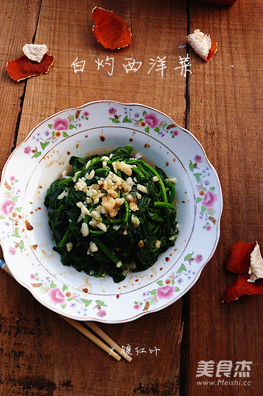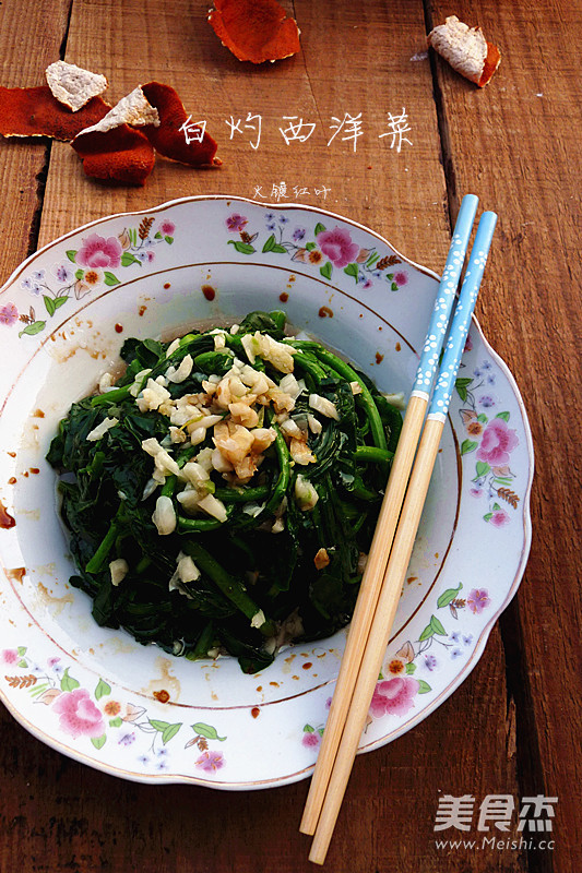 蔬菜我最喜欢的吃法就是白灼了,随便的煮至刚刚熟,爆香个油蒜往菜上一撒,再来个酱油一淋下去,就可以吃了,看似简单的做法,全靠你用对酱油才能把蔬菜的鲜甜带出来...... 主料 西洋菜400克 辅料 花生油2匙 海鲜酱油1大匙 蒜10克 姜10克 白灼西洋菜的做法 1.备材料 2.煮沸一锅水,下几片姜与适量的油 3.投西洋菜灼至刚熟,捞起上碟备用 4.热锅,下油爆香蒜头,关火 5.把油蒜淋在熟西洋菜上 6.取酱油淋在菜里即可食用