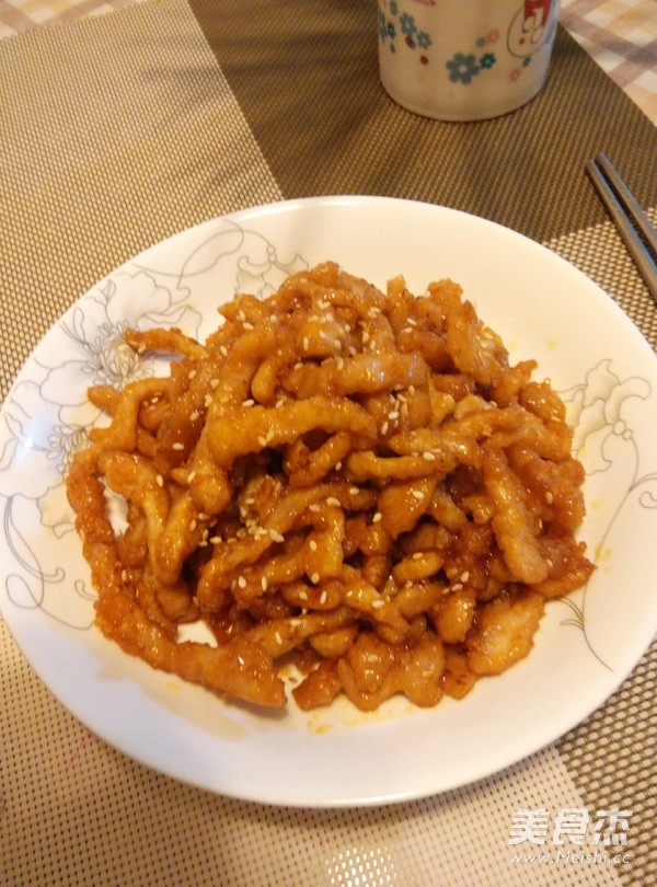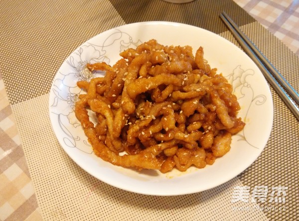 糖醋口感的瘦肉丝,非常美味,也很受孩子们的喜爱。