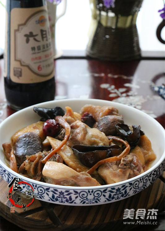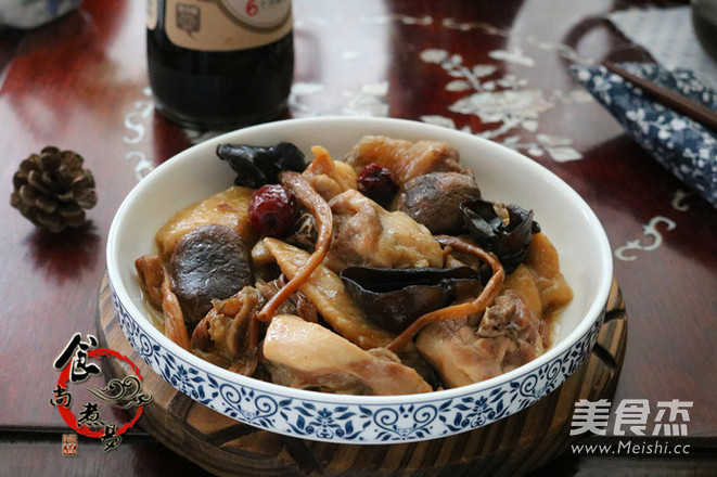 草鸡半只 冬菇(干)20克 干木耳20克 黄花菜20克 红枣6粒