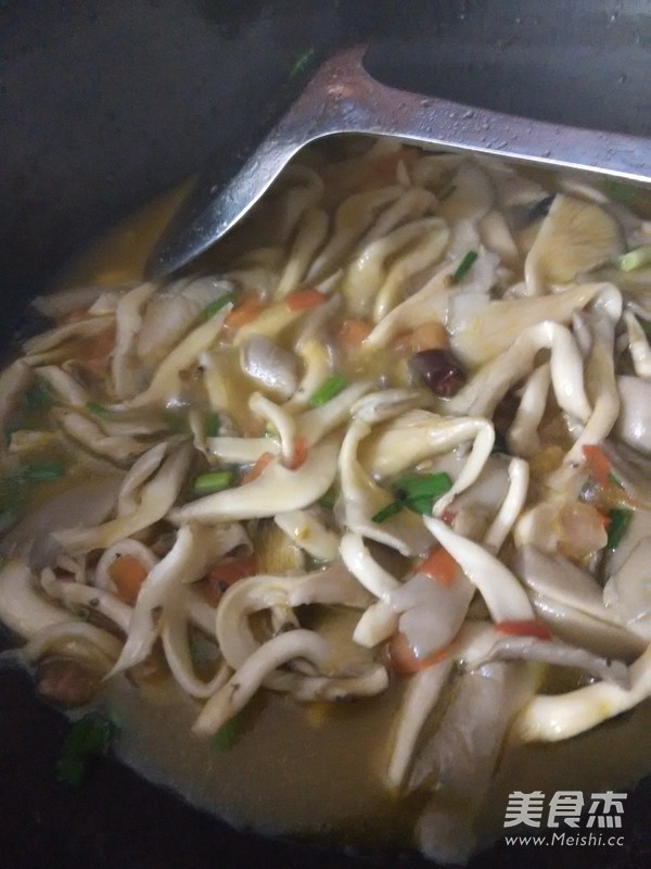 7.待蘑菇炒至8分熟的时候,放入适量食盐,再翻炒