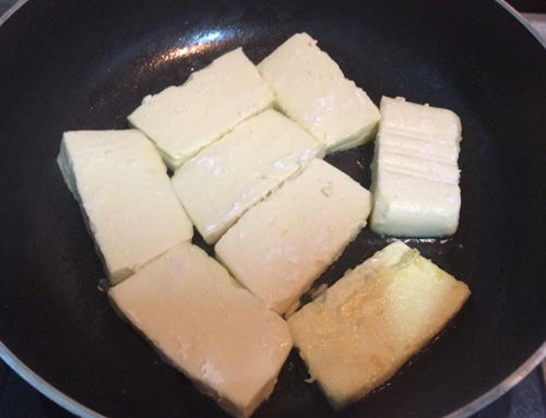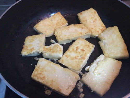 酱烧鸡蛋豆腐的食材介绍 主料:鸡蛋豆腐一盒,葱2条 调料:鲣鱼酱油或酱油1大匙,水适量,油适量 有时候没时间买菜,就用一盒鸡蛋豆腐,解决一顿饭,只要用油煎一下可以简单轻松上菜啰!简单美味又下饭菜,下面把就这款酱烧鸡蛋豆腐制作方法分享给大家。 酱烧鸡蛋豆腐的做法: 更多美食推荐:锅塌豆腐的做法大全 1、将葱洗净切细末,备用。 2、煎豆腐:将鸡蛋豆腐切块约1-1.5公分厚、然后将豆腐两面沾少许面粉、起油锅下锅煎。 3、中火煎至两面金黄,不需一直翻动以免碎掉。最后加入少许的水以及调味料。 4、起锅时加入葱花盖锅盖闷一下,就可以装盘享用了。 成品图: