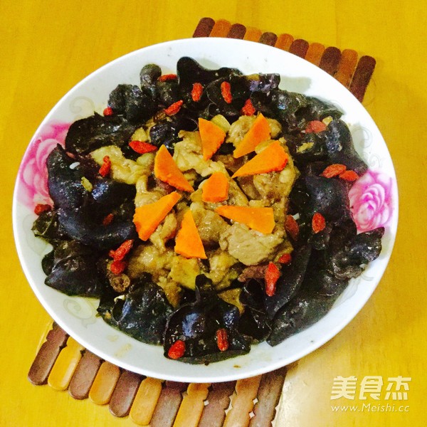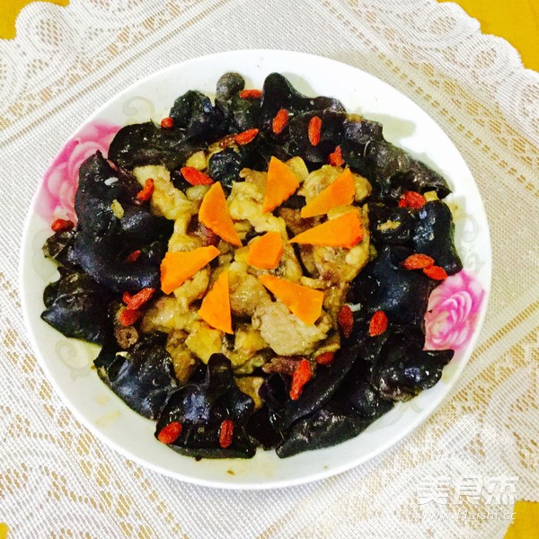 喜欢吃云耳 主料 鸡肉400克 云耳50克 胡萝卜10克 辅料 油20克 盐8克 蚝油3克 枸杞子5克 云耳焖鸡的做法 1.鸡肉切件,加入姜片,加入油盐、蚝油腌10分钟,云耳用清水浸发好 2.起油锅 3.放入鸡肉翻炒 4.加入少许水煮至熟 5.加入云耳炒3分钟 6.盛出,撒上杞子和胡萝卜装饰 烹饪技巧 预先腌好鸡肉好入味
