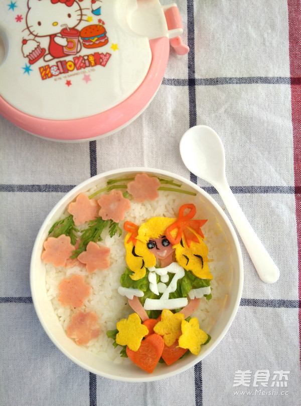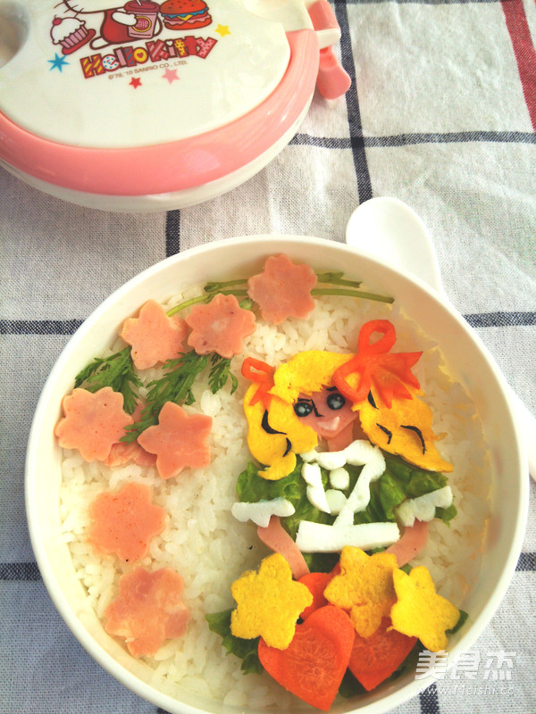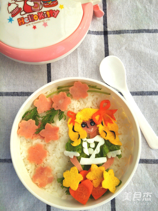这个是一时兴起,第一次做来玩玩儿,因为觉得这东西要是吃的话,实在不够塞牙缝,还比较麻烦。。不过小家伙很喜欢,我做的时候她就在一边看着,草草拍了两张照片,她就高高兴兴端去吃了,还说太好吃了,太好吃了。。。其实就是米饭和鸡蛋,生菜,香肠嘛。。。汗。。。孩子的世界,果然是颜控!