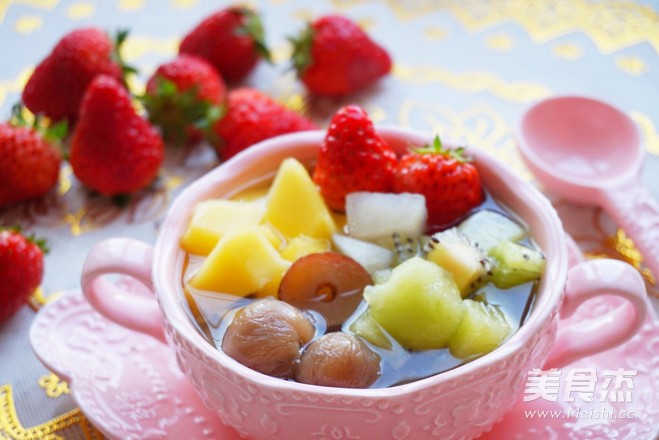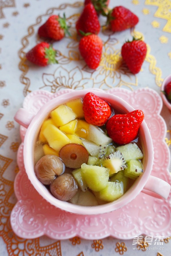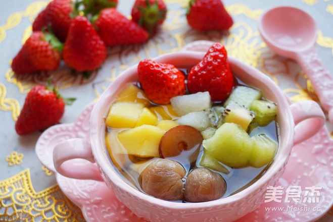 桃胶20克 雪梨1个 芒果1个 猕猴桃1个 草莓数颗 桂圆(干)数颗 枣适量