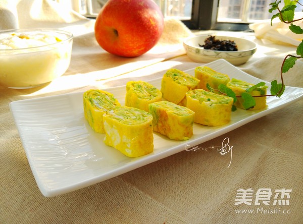 15.把蛋卷切段即可,蛋卷的名字简单了点,叫厚蛋烧立马高大上,哈哈