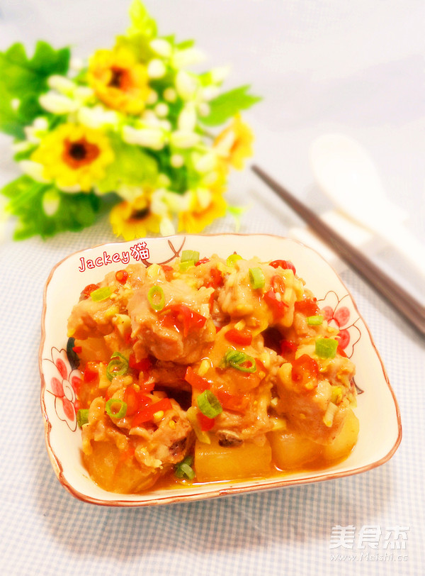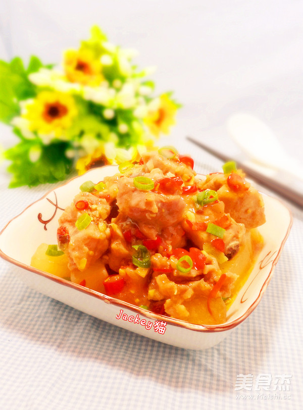 猫喜欢在网上找一些美食大师做的食谱,学习的同时,也给自己做菜带点灵感,有些菜虽然看上去很喜欢,但不一定适合自己的口味,今天学的这道菜肴就是一道改良版的湘菜,不光是蒸排骨那么简单,里面还加入了清甜的白萝卜,吸收了排骨的肉香味,再拌有剁辣椒的香辣味,很开胃下饭的一道菜肴,一定要推荐给大家,特别是那些不爱吃白萝卜的人,这道菜准保让你从此爱上了白萝卜哦