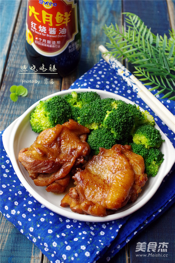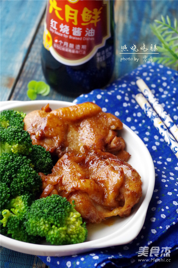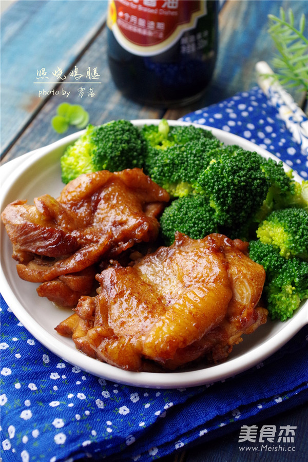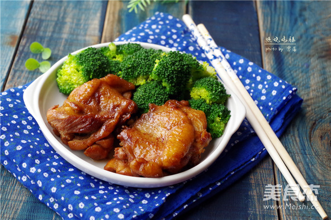 10.西兰花洗净,调入适量盐,植物油焯水后,摆盘,将鸡腿放进盘里即可。