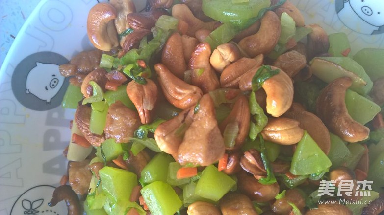 莴笋清香脆爽,配上牛肉丁腰果,用胡萝卜搭色,营养丰富。