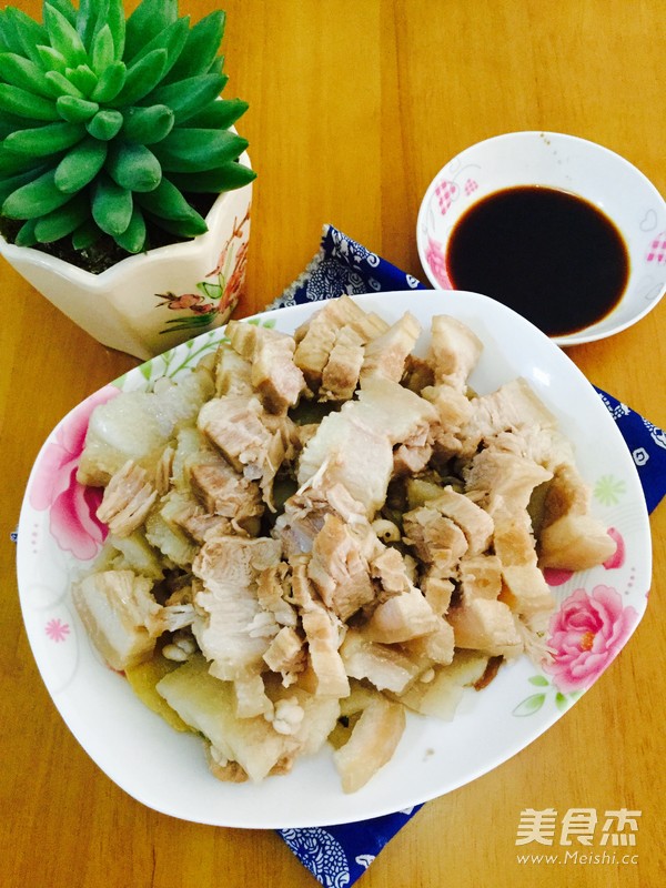 8.盛起粉葛和排骨,猪肉捞起,切片盛出,配上生抽就是一道美食了
