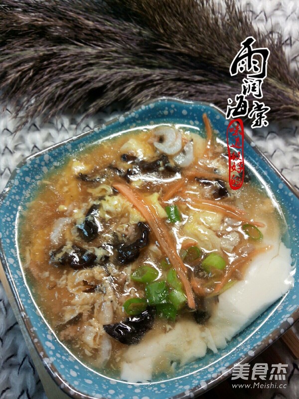 19.将鸡蛋卤浇在豆腐脑上,一碗豆香味浓郁的豆腐脑大功告成了。