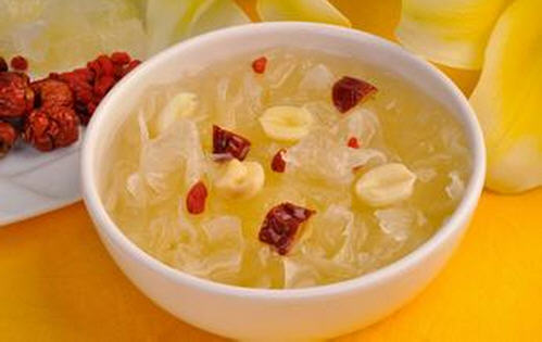 白木耳用水泡软,洗净去硬蒂,放入果汁机后加2杯水,稍微搅打约30秒即可,勿打得太细,以保持口感。