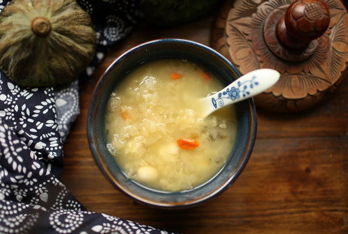银耳以其色白如银,形如人耳故名,又名白木耳、白耳子、雪耳等。银耳一般制成干品,以干燥、白色微黄、朵大体轻、有光泽、胶质厚者为佳品。”银耳能滋阴清热,润肺止咳,养胃生津,益气和血,补肾强心,健脑提神,恢复疲劳等功效。具有滋润而不腻滞的药用特点。