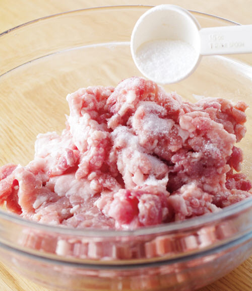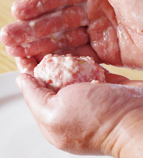 3、续于作法2中加入太白粉拌匀,再平均分成10颗肉丸状。