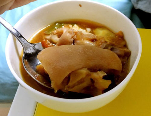 中医认为猪蹄性平,味甘咸,小寒,无毒,入胃经,具有补虚健腰膝等功能。是一种类似熊掌的美味菜肴及治病良药。《随息居饮食谱》:“填肾精而健腰脚,滋胃液以滑皮肤,长肌肉可愈漏疡,助血脉能充乳汁,较肉尤补。”