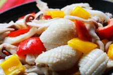 2、锅中水烧开,放入鱿鱼汆烫1分钟后捞出沥干;