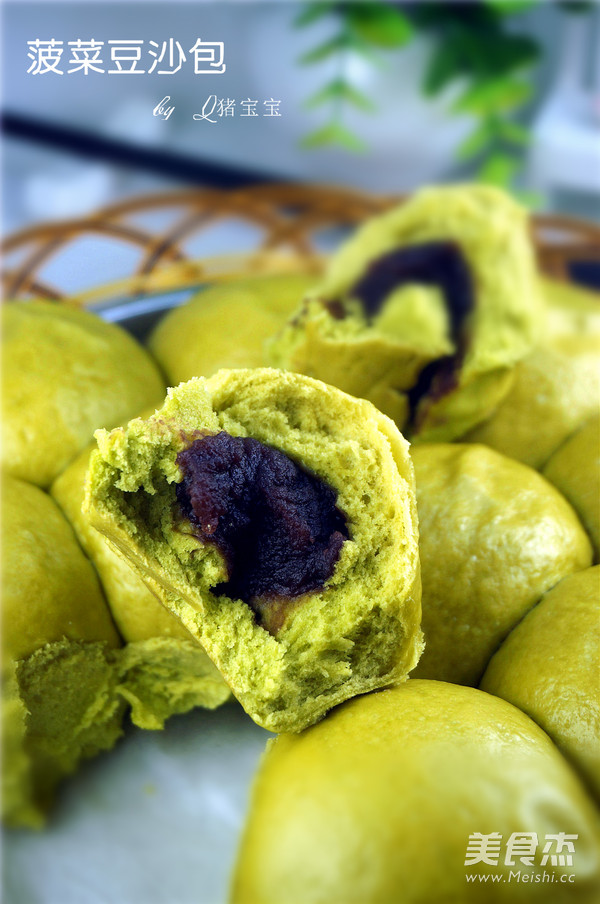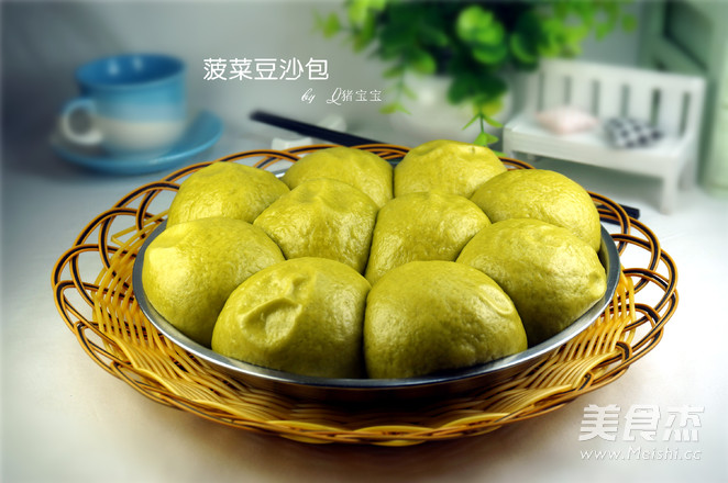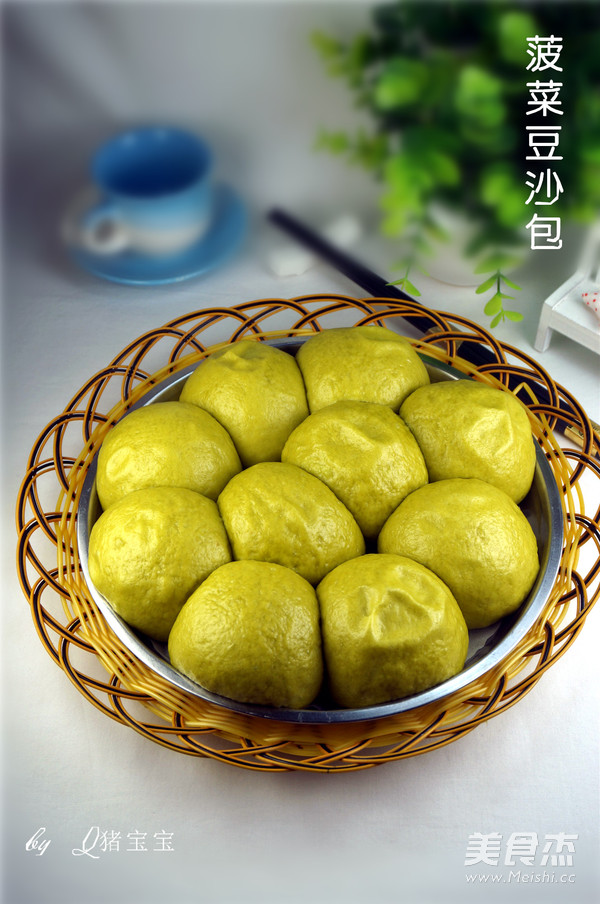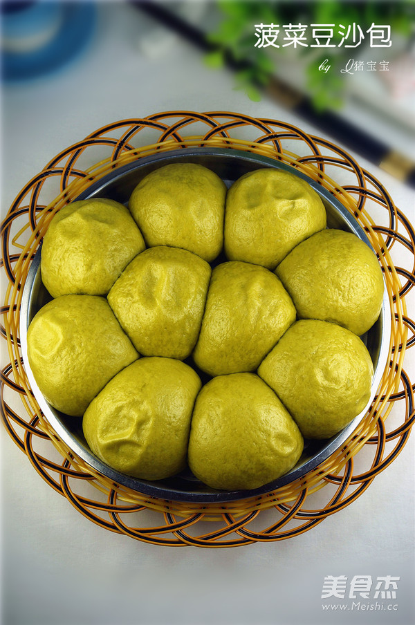 14.让包子在锅里继续焖5分钟左右再开盖,菠菜豆沙包就做好了