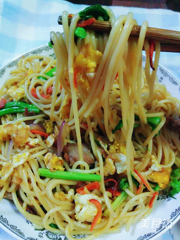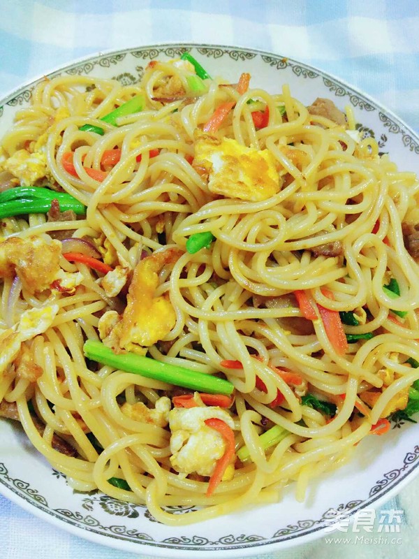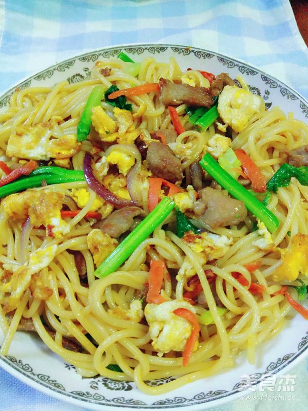 宵夜的绝佳选择!炒面最怕的是粘锅,用不粘锅炒面也会粘你没商量。所以,每次炒面就会用比平常炒菜多一半的油,总是觉得吃了会发胖,但是一入晚上十点,肚子就饿的慌,管他胖不胖,这是每个吃货的通病吗