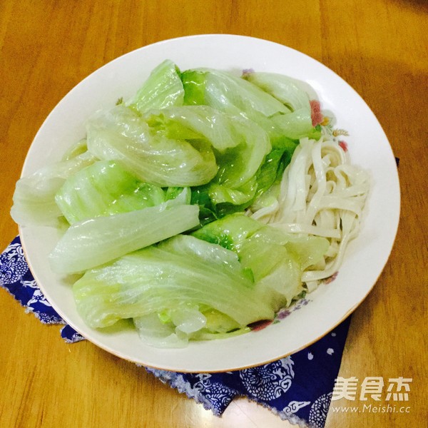 我的宝贝发烧了,清淡些,吃个面吧 主料 面条(生)80克 生菜100克 辅料 油10克 盐5克 生菜面的做法 1.烧开水,加入油盐 2.放入面条煮熟 3.盛起 4.另烧开水,加入油盐,加入生菜焯至断生 5.盛起生菜,注入青菜汤边 烹饪技巧 1、煮面条的开水要加入油盐,这样面条菜不会粘连 2、生菜焯至断生就好