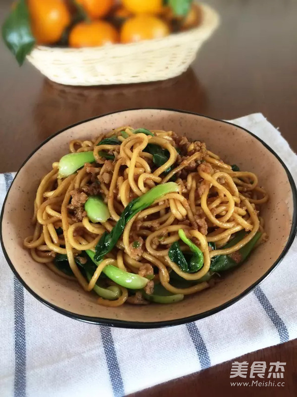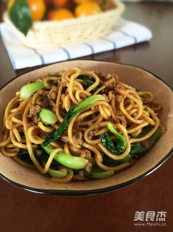 9.最后面条下锅,用筷子抖散,翻炒一分钟关火。