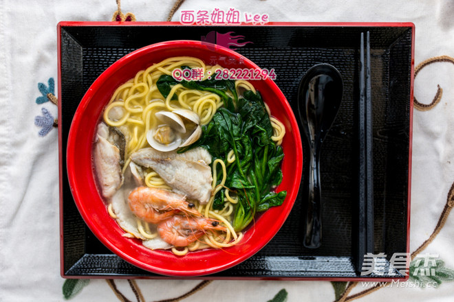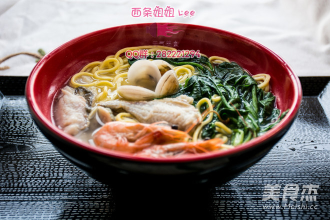 13.再加入黄鱼、蛤蜊、还有上顿吃剩下的虾,汤鲜料足的黄鱼面做好了