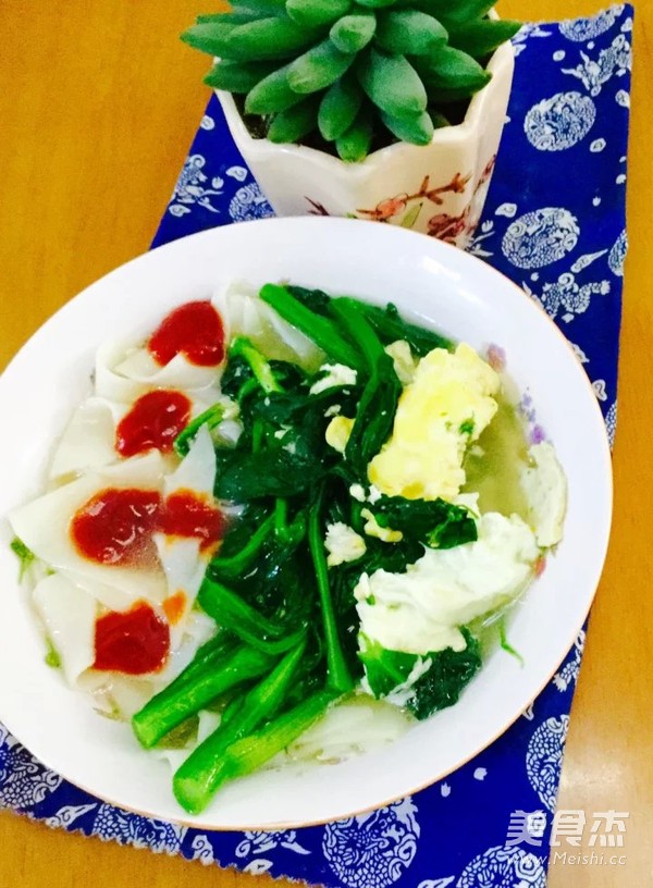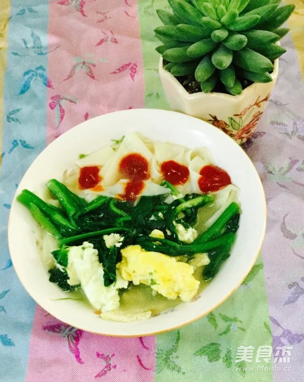 妈妈喜欢的刀削面 主料 面片100克 菜心100克 鸡蛋60克 辅料 油10克 盐2克 蚝油3克 鸡蛋菜心煮面片的做法 1.准备好材料 2.先烧开水,把面片煮熟,捞起过冷河 3.汤锅内放适量清水,加入油盐,放入菜心 4.待菜心煮至断生,打入鸡蛋 5.加入面片同煮1分钟 6.加入蚝油调味 7.盛出,喜欢番茄酱的亲,可以加加入番茄酱 烹饪技巧 菜心煮至断生就好了
