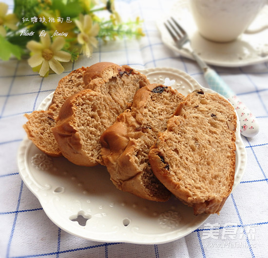 红糖性温、味甘、入脾,具有益气补血、健脾暖胃、缓中止痛、活血化瘀的作用,与富含营养的核桃、蓝莓干一起加入面包中,口感、营养更上一层楼。