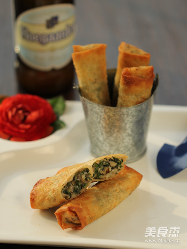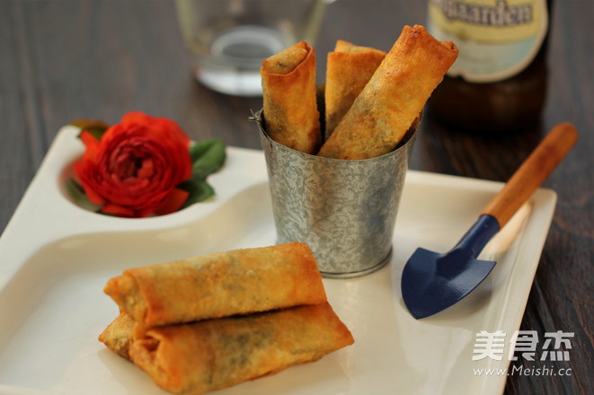 9. 锅中放适量的油,待油七成热时, 放入春卷, 中小火炸;