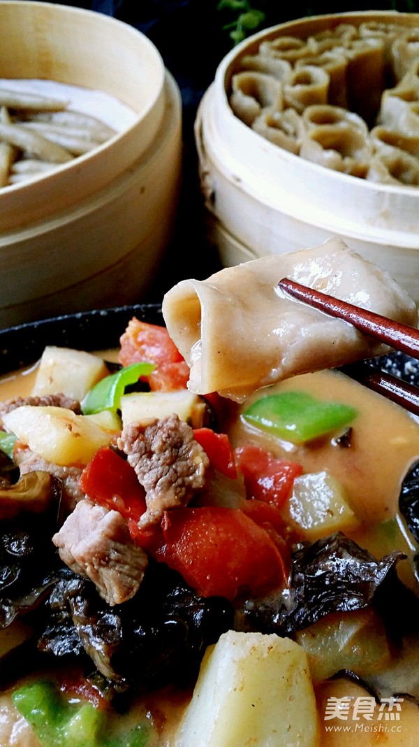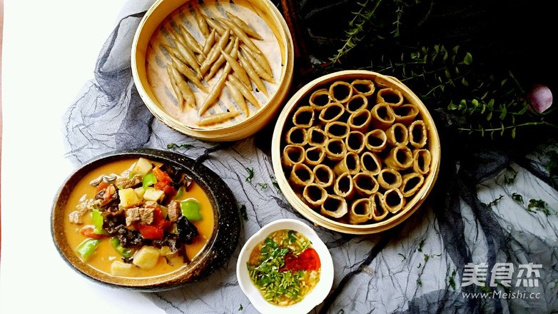 10.吃的时候配上冷热两种沾料,羊肉臊子汤和油辣子蒜泥蘸汁。
